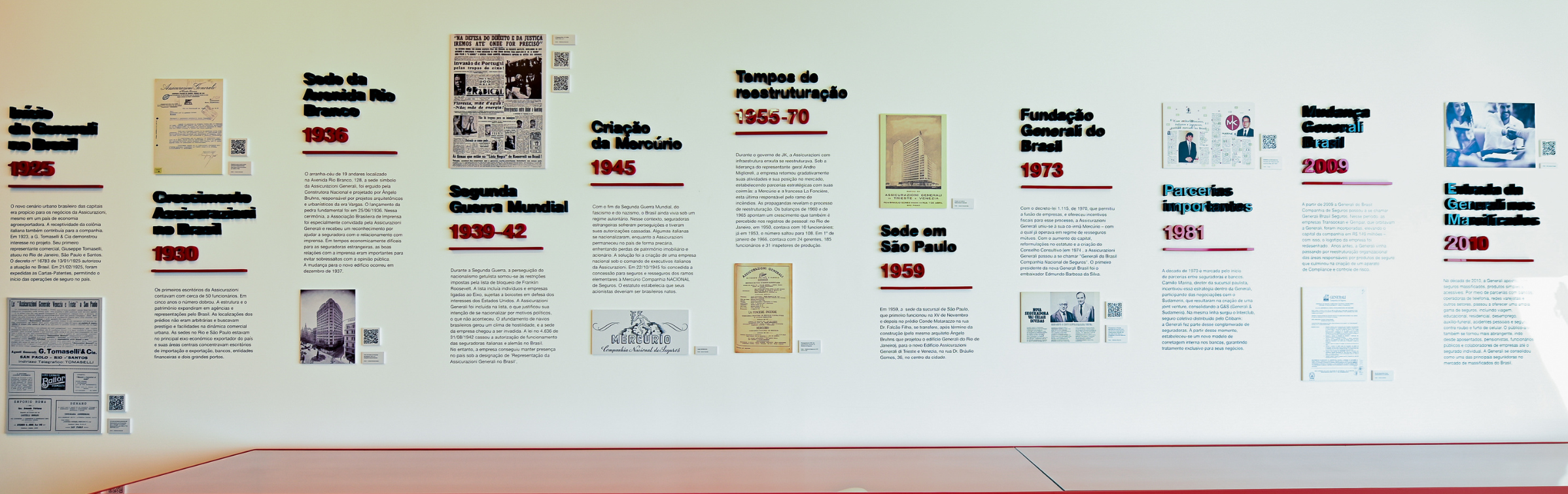 Abril de 2025 – Em comemoração aos 100 anos de atuação no Brasil, a Generali lançou um espaço de memória contando sua história como seguradora estrangeira com a atuação mais longa no país. O Spazio Di Memoria traz fotos, vídeos, documentos, prêmios e depoimentos, que transportam o visitante ao passado, por meio de uma experiência inovadora.